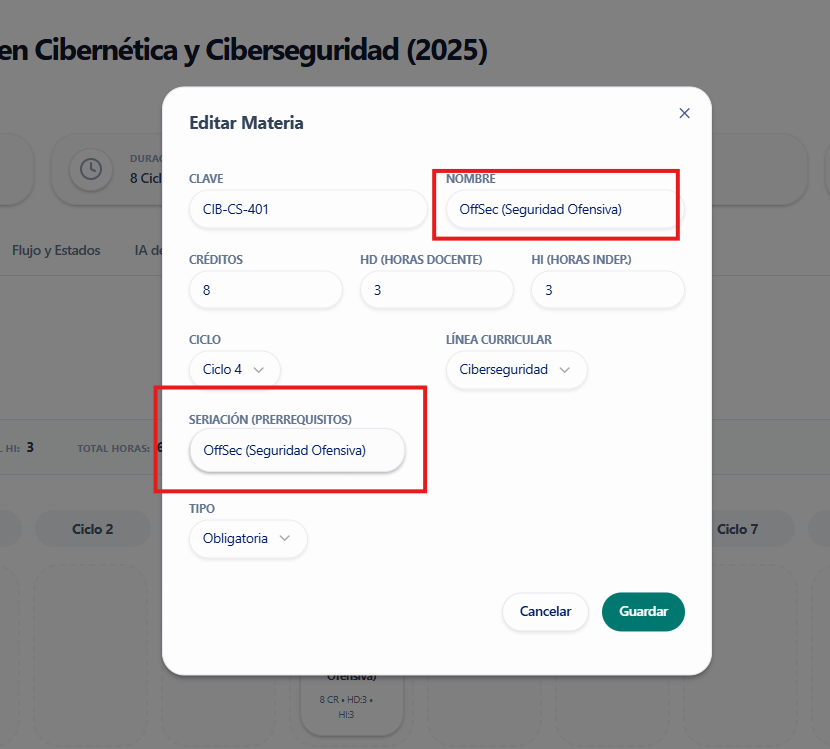 Que no puedas seriar una materia consigo misma