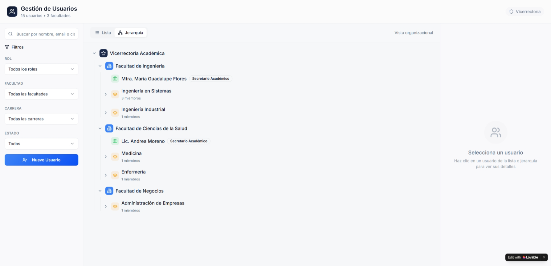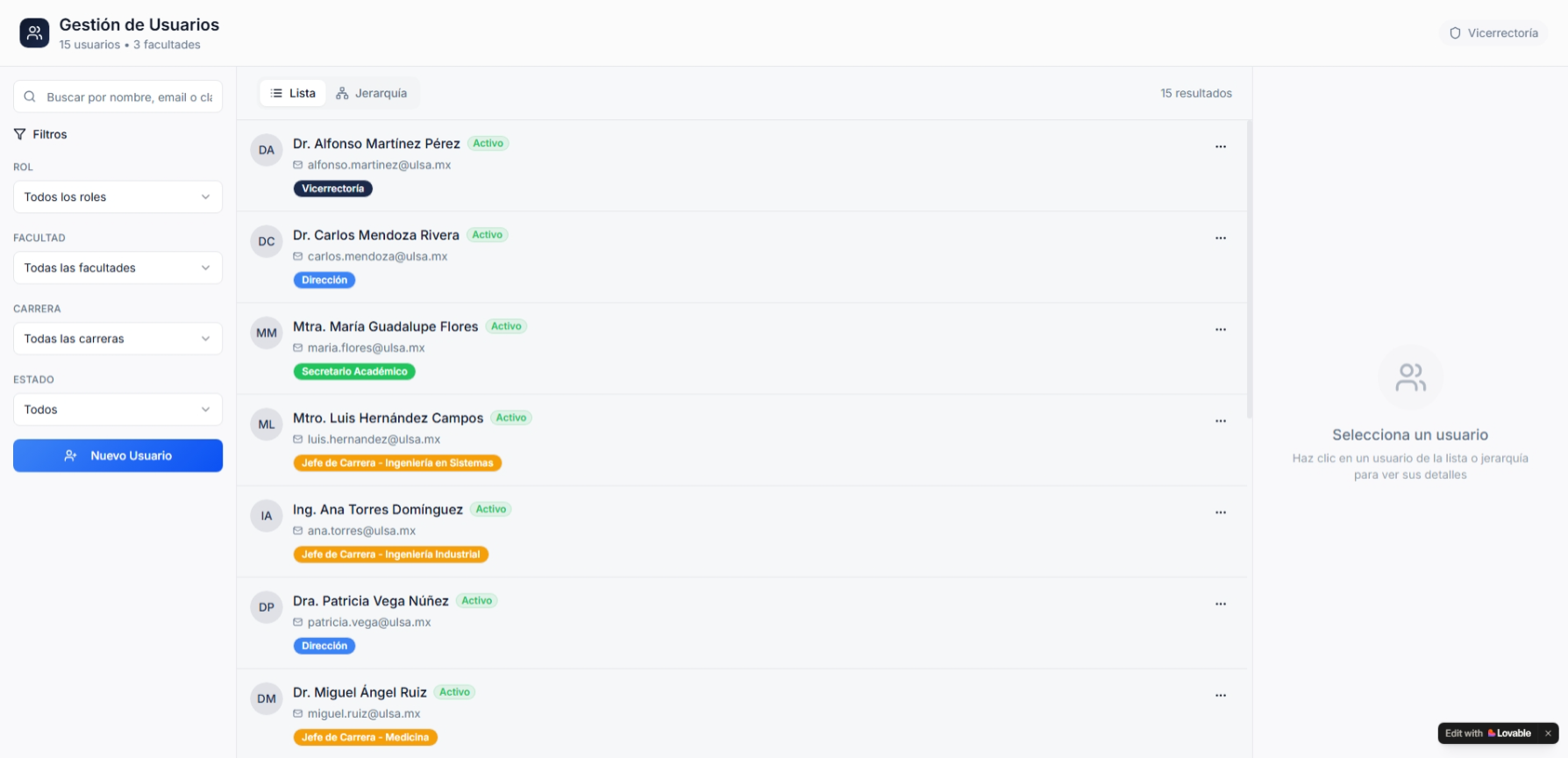 Empezar con la vista de Usuarios #43